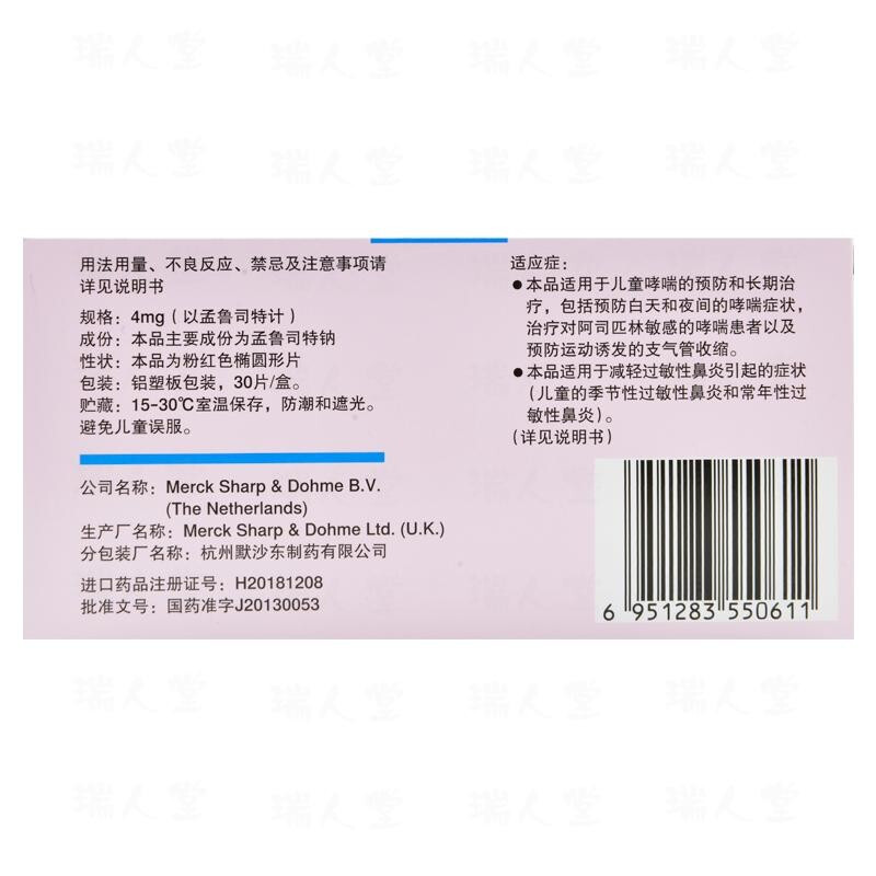 Rx 孟鲁司特钠咀嚼片(顺尔宁)